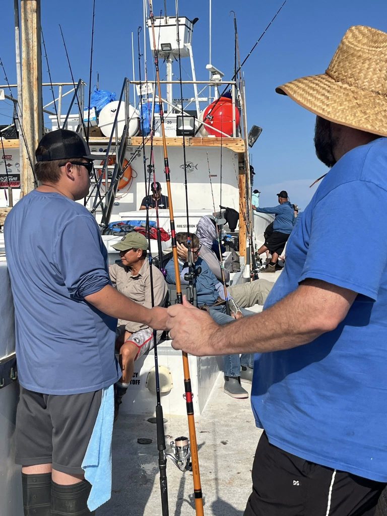 The FIB’ers had a team charter with The Calvery Chapel Reel Disciples Fishing Club, East Anaheim (CCEA). This September charter was on the Oceanside 95 out of Point Loma Landing in San Diego. The two clubs met at the landing at 7:30 a.m. and boarded the big boat around 9:30 a.m. This was our first time chartering the O-95 and people liked the size of the boat and the bunk rooms. Prior to leaving, the fish counts over the last few day looked good and the weather report was great so we had high hopes. We traveled the long trip south off the Mexico coast near Ensenada with hopes for a shot of big bluefin fishing at night but that was not the case for us.